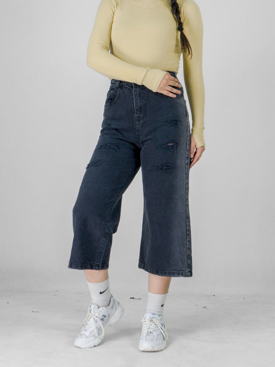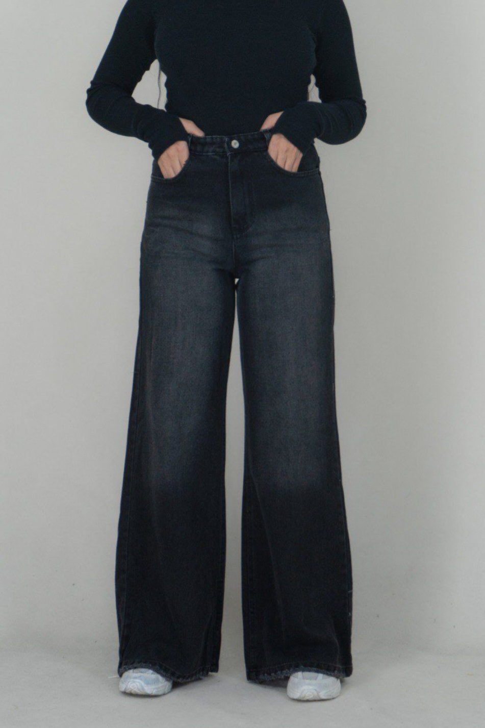 شلوارجین زنانه واید لگ پشت کش ذغالی قد ۸۵