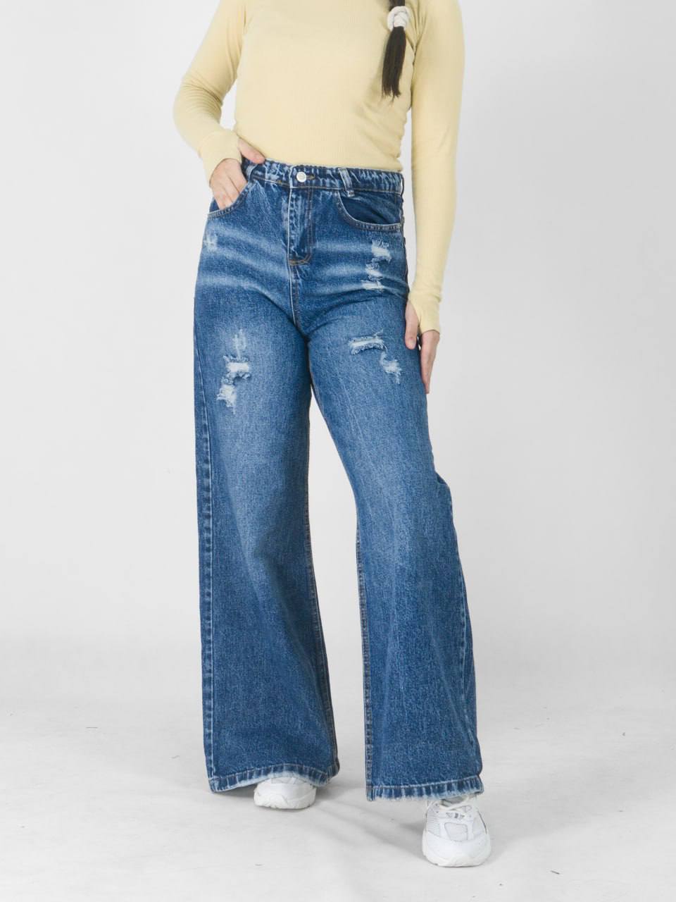 شلوار جین زنانه فول بگ رنگ تینت کثیفشور